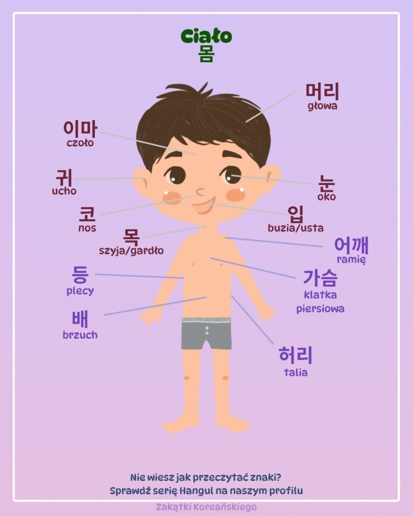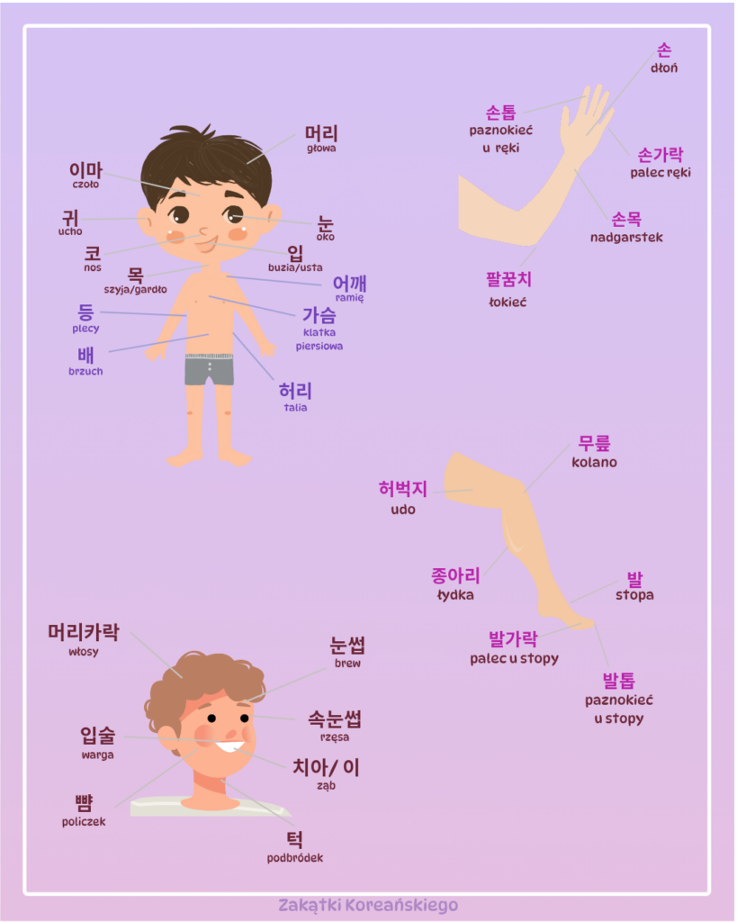 W tym artykule znajdziesz najważniejsze części ciała podzielone na kategorie: głowa, tułów, ręce i nogi. Wszystkie słówka są pokazane na przejrzystych grafikach, dzięki którym łatwiej je zapamiętasz!