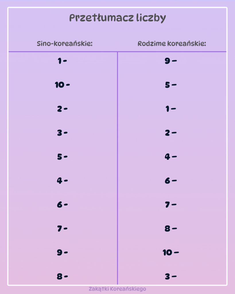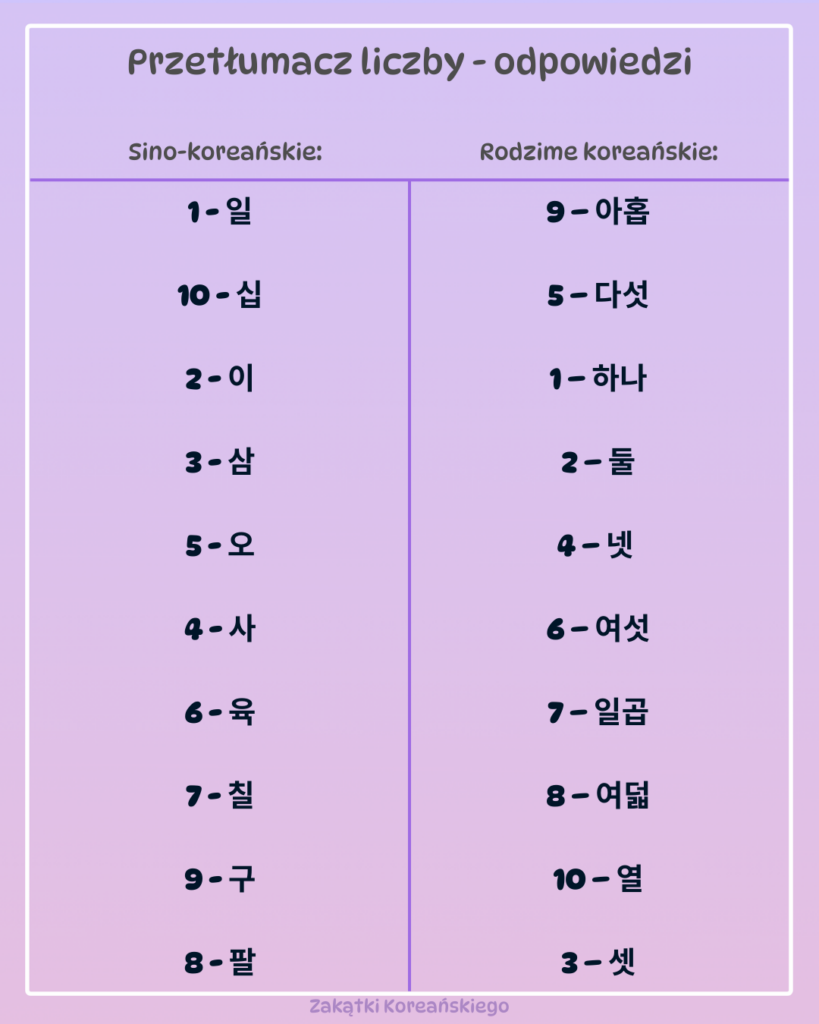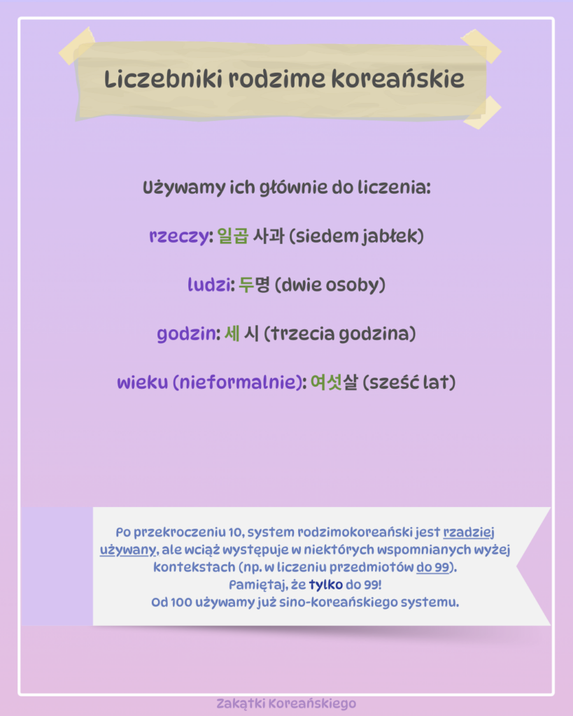 Uwaga! Przypominam raz jeszcze: w systemie rodzimym nie mamy liczb powyżej 99 – od 100 wzwyż używa się tylko sino-koreańskich liczb.