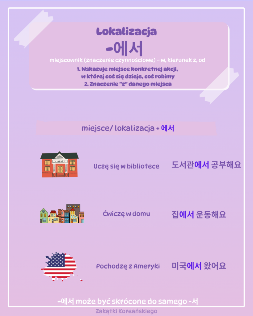 Jeśli zastanawiasz się, jak poprawnie wskazać miejsce, w którym coś się dzieje, to świetnie trafiłaś/ trafiłeś! W języku koreańskim partykułe 에서 używamy, gdy mówimy o lokalizacji akcji. To dzięki niej możesz jasno określić, gdzie coś robisz – czy to czytasz książkę w bibliotece, gotujesz w kuchni, czy ćwiczysz na siłowni.