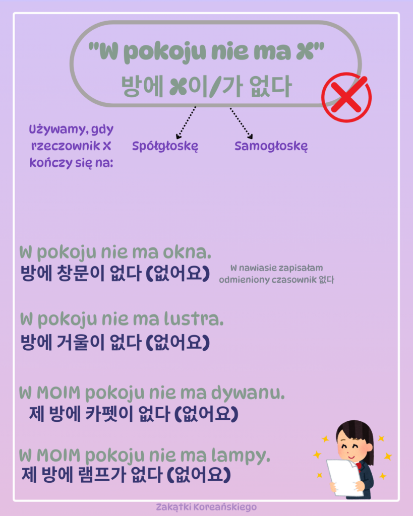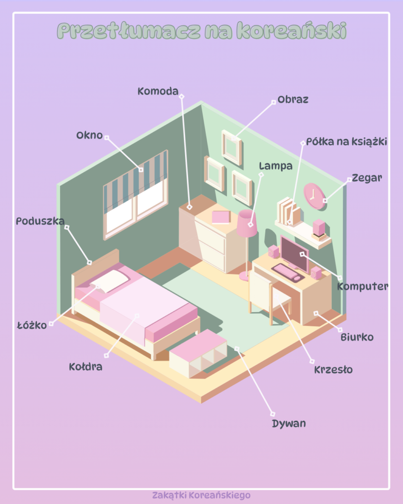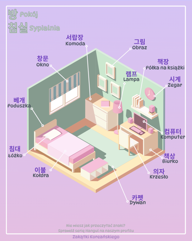 W tym artykule poznasz nowe słówka koreańskie, nauczysz się poprawnie je tłumaczyć oraz dowiesz się, jak mówić, że coś jest/nie jest w Twoim pokoju 🙂