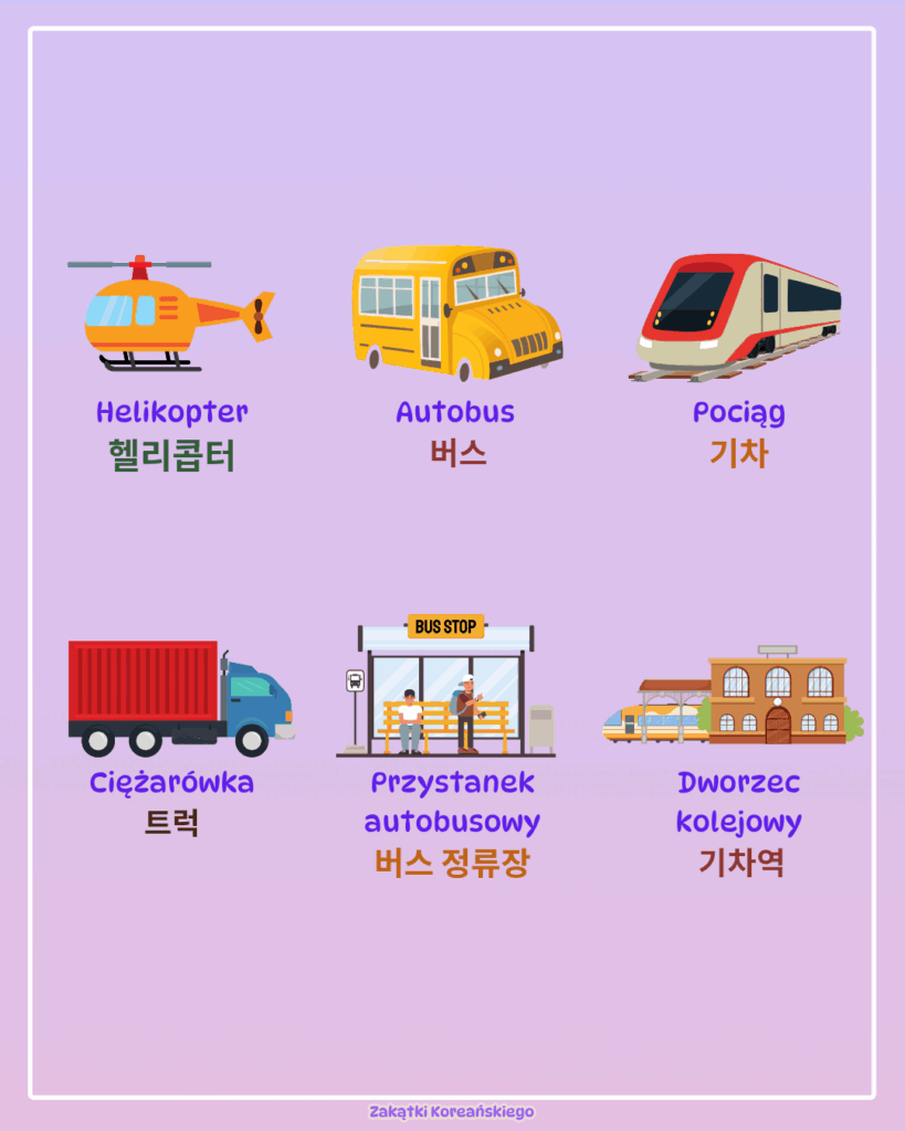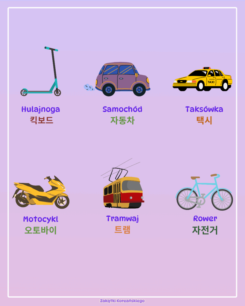 3. 를 타다 – Proste wyrażenie podróży