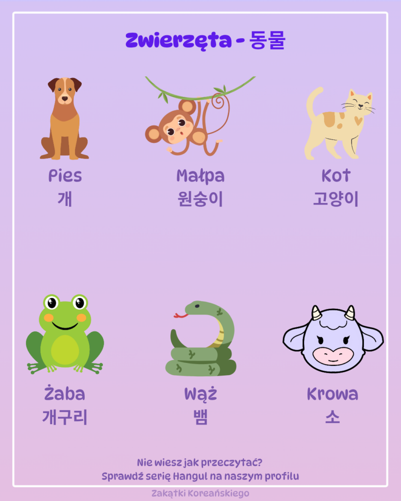 🐱Zwierzęta to jeden z tych tematów, który zawsze wzbudza pozytywne emocje – w końcu kto nie lubi rozmawiać o swoich ukochanych pupilach? Jeśli uczysz się koreańskiego, warto poznać nazwy zwierząt w tym języku. Przydadzą się nie tylko w codziennej rozmowie, ale też podczas oglądania koreańskich filmów czy czytania książek. W tym artykule znajdziesz podstawowe słówka związane ze zwierzętami po koreańsku oraz kilka ciekawostek językowych.
